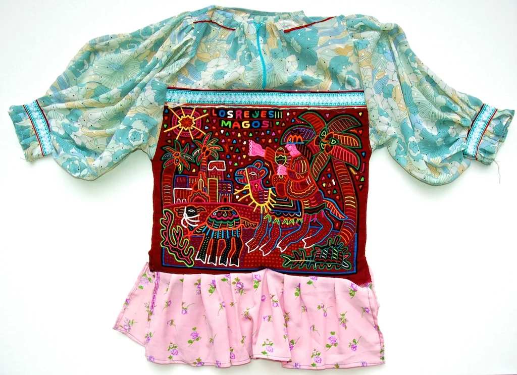 Right: Cuna blouse with mola depicting the Wise Men traveling to visit the Christ Child.