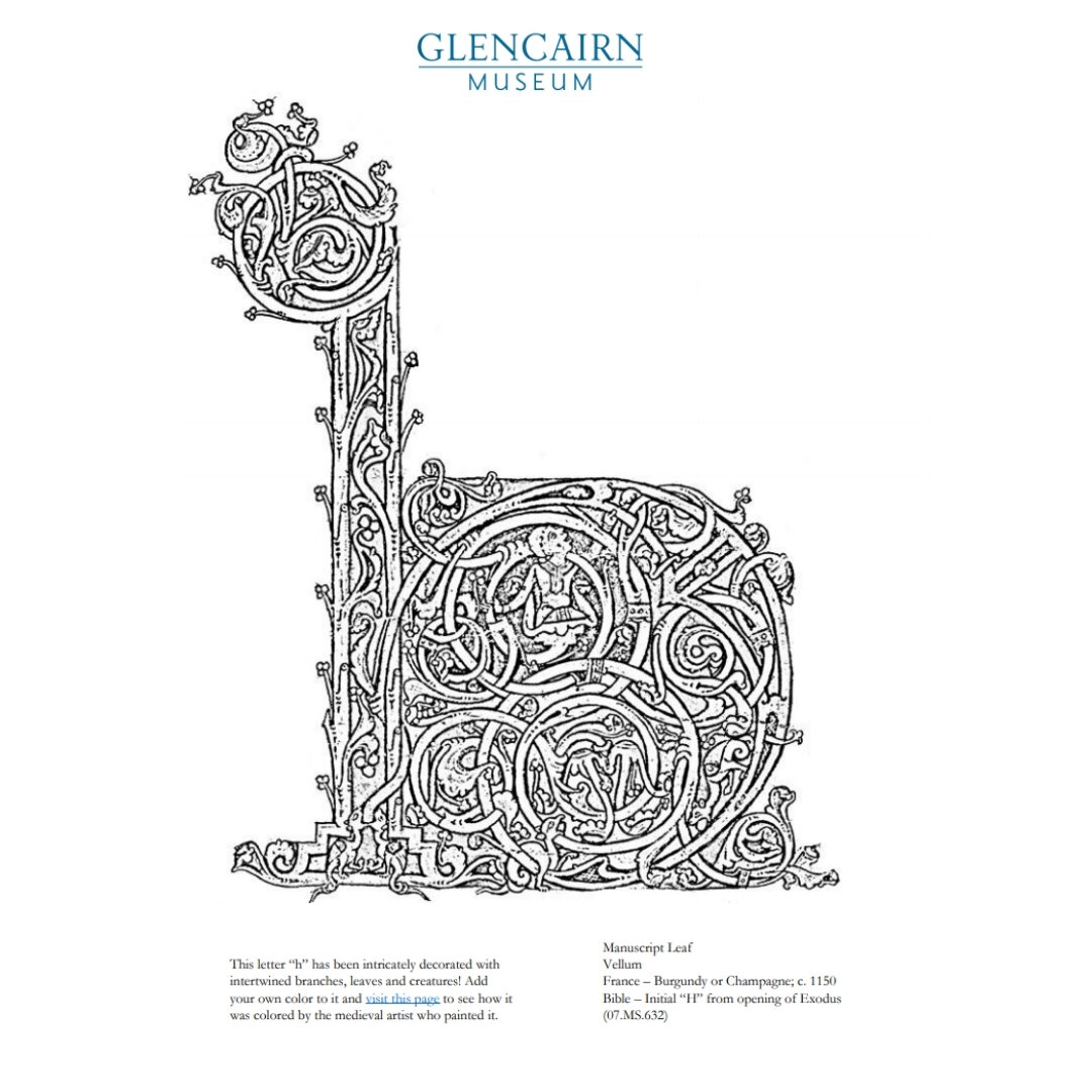 Get creative and colorful with one of the coloring pages below, each inspired by objects in the Glencairn collections!