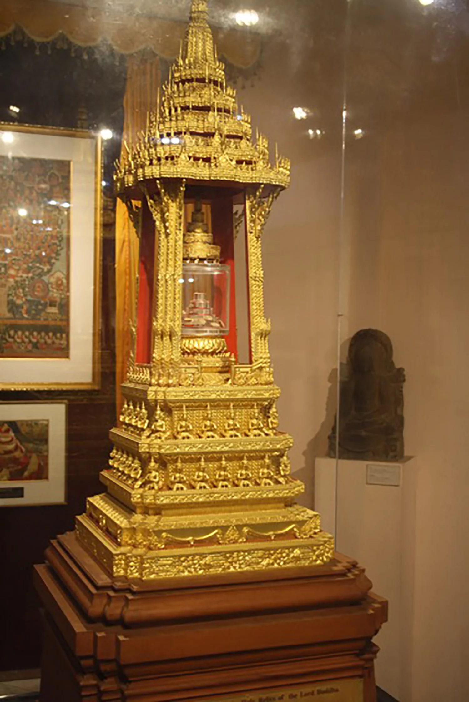 A shrine containing relics of the Lord Buddha presented by the government of Thailand to the National Museum in Delhi, India. According to the museum’s website, “These objects are of great reverence to Buddhist pilgrims, and the Museum gets hundreds of visitors of Buddhist faith from all over the world who come to this room to pay homage and venerate the relics.” Photo: Crispin Paine.