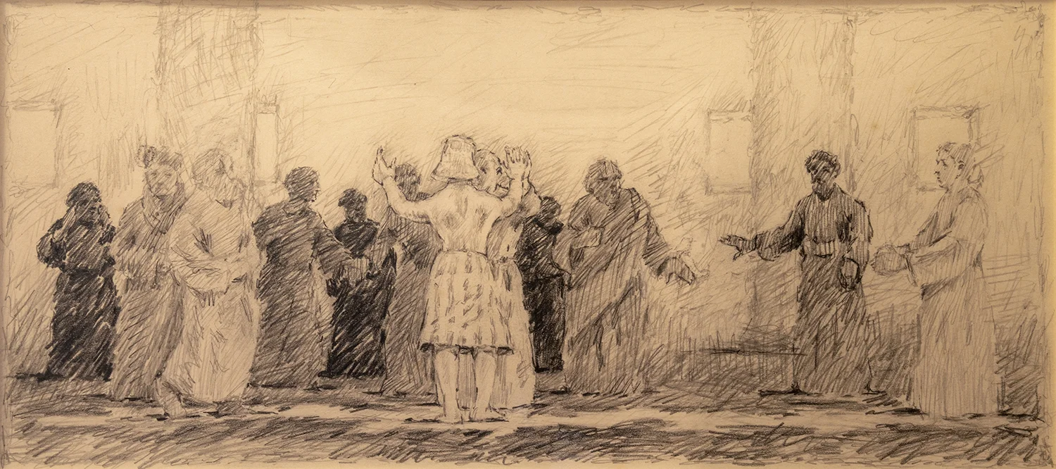 Figure 13: Joseph Revealing His True Identity to His Brothers. Study. Genesis 45:1-15. Pencil, 1985. On loan from Siri Yardumian Hurst. See Figure 14.