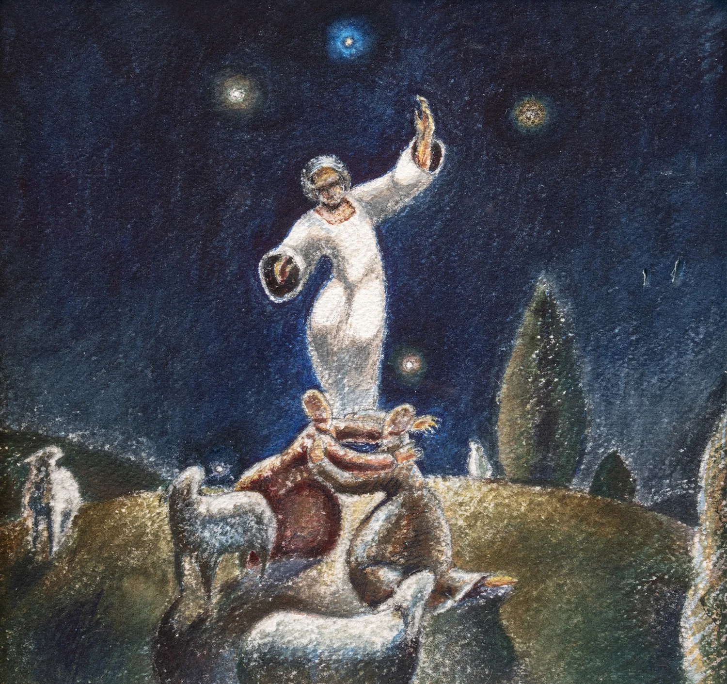 Figure 17: Annunciation to Shepherds. Luke 2:8-14. Tempera and oil, 1977. Collection of Glencairn Museum. See Figure 16.