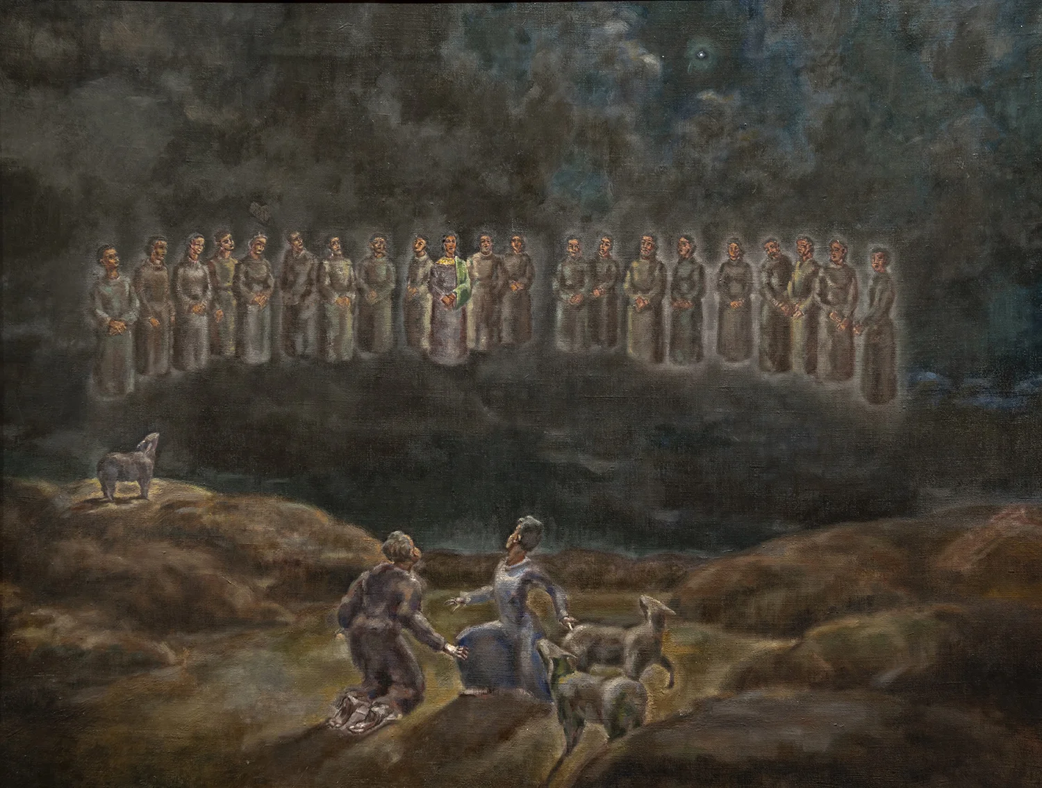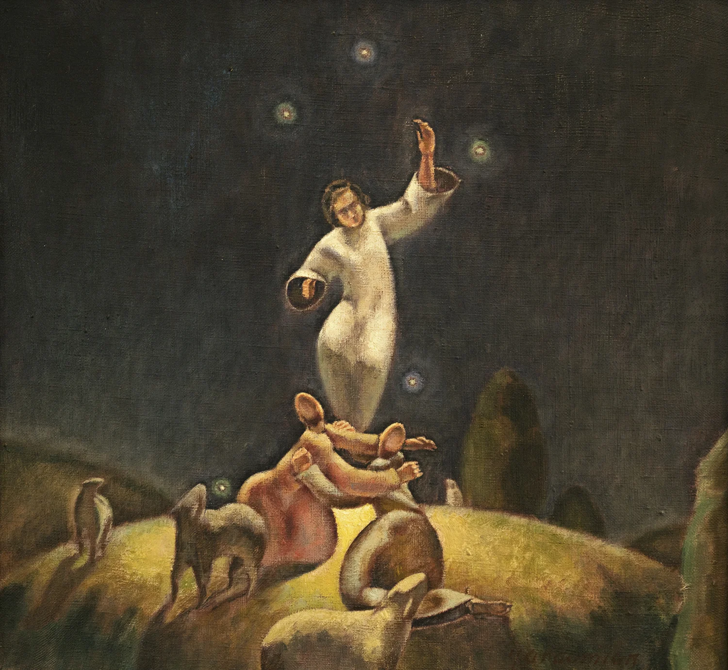 Figure 3: Annunciation to Shepherds. Luke 2:8-14. Oil on canvas, circa 1975. On loan from Siri Yardumian Hurst.