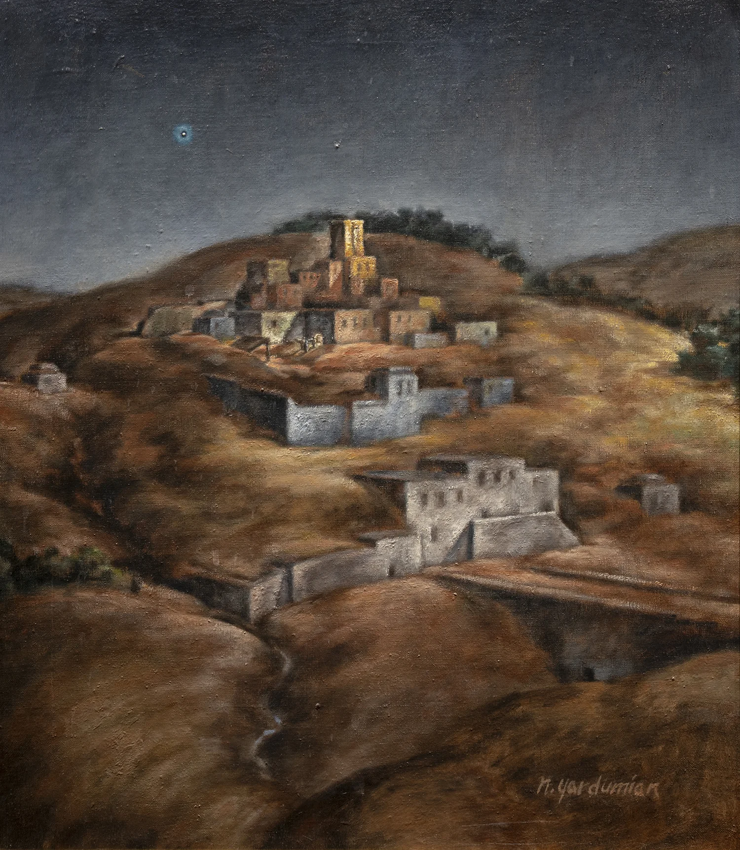 As a devoted reader of 18th-century Swedish theologian Emanuel Swedenborg, Yardumian believed that religion was a central aspect of human experience. He maintained a special interest in religious art, believing that the artist must learn to discern the spiritual from the mundane in the world around him, and seek to communicate spiritual ideas to others through his paintings. He was fond of joking that his paintings were pieces of his mind, and he loved “giving people a piece of his mind.” “Ideally paintings,” according to Yardumian, “add to a room something spiritual, that is, something genuinely human. One may hang a painting and have thereafter on his wall a ‘window to the soul.’”