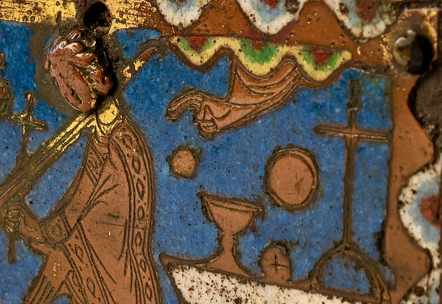 Pitcairn would also have known about the “clouds of heaven” from objects in his own medieval collection, such as the enamel reliquary of St. Thomas Becket (Figures 2 and 3) as well as examples in sculpture and stained glass (Figures 4 and 5).