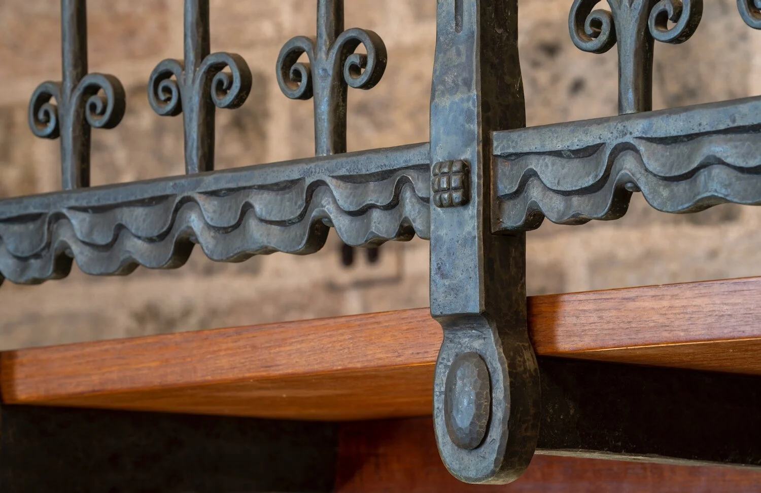 Figure 11: The Monel metal posts that were designed for the third-floor balcony overlooking Glencairn’s Great Hall feature the clouds of heaven.