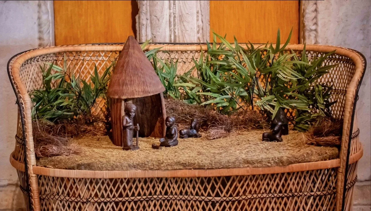 Figure 14: This Nativity is presented within a traditional East African setting including a thatched-roof hut and Sanga cattle. Thomas Mrewa, an artist and woodcarver who lived near the Nyadire Mission of the United Methodist Church in Zimbabwe, carved the figures and huts. This set was commissioned by Dr. JonnaLynn K. Mandelbaum, an alumna of Lebanon Valley College, while serving as a nurse in Zimbabwe in the 1970s. On loan from The Suzanne H. Arnold Art Gallery, Lebanon Valley College, Annville, PA.