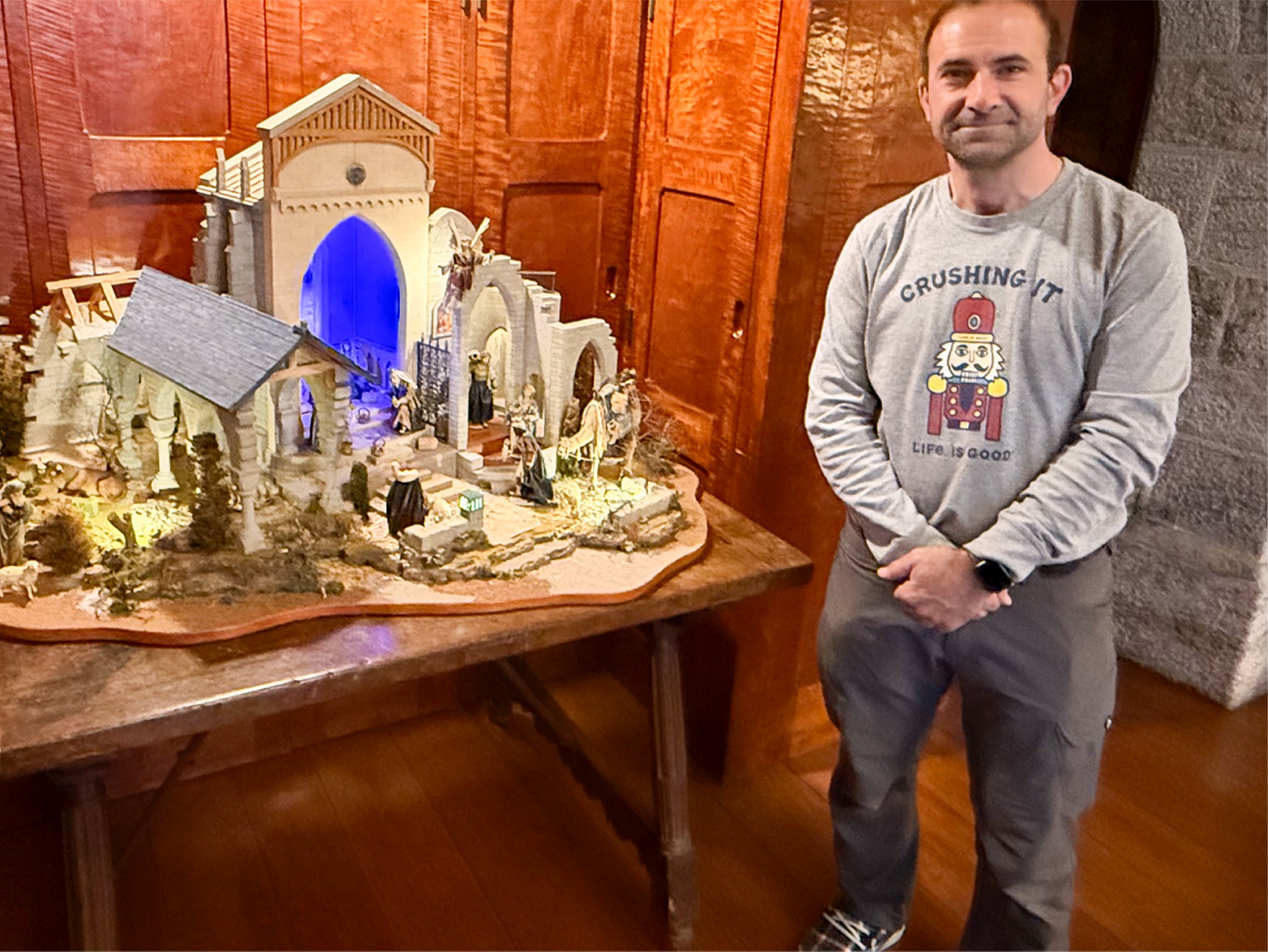 Figure 10: A.J. DiAntonio posing with Bryn Athyn Nativity, made by Navidad Nativities in 2025.