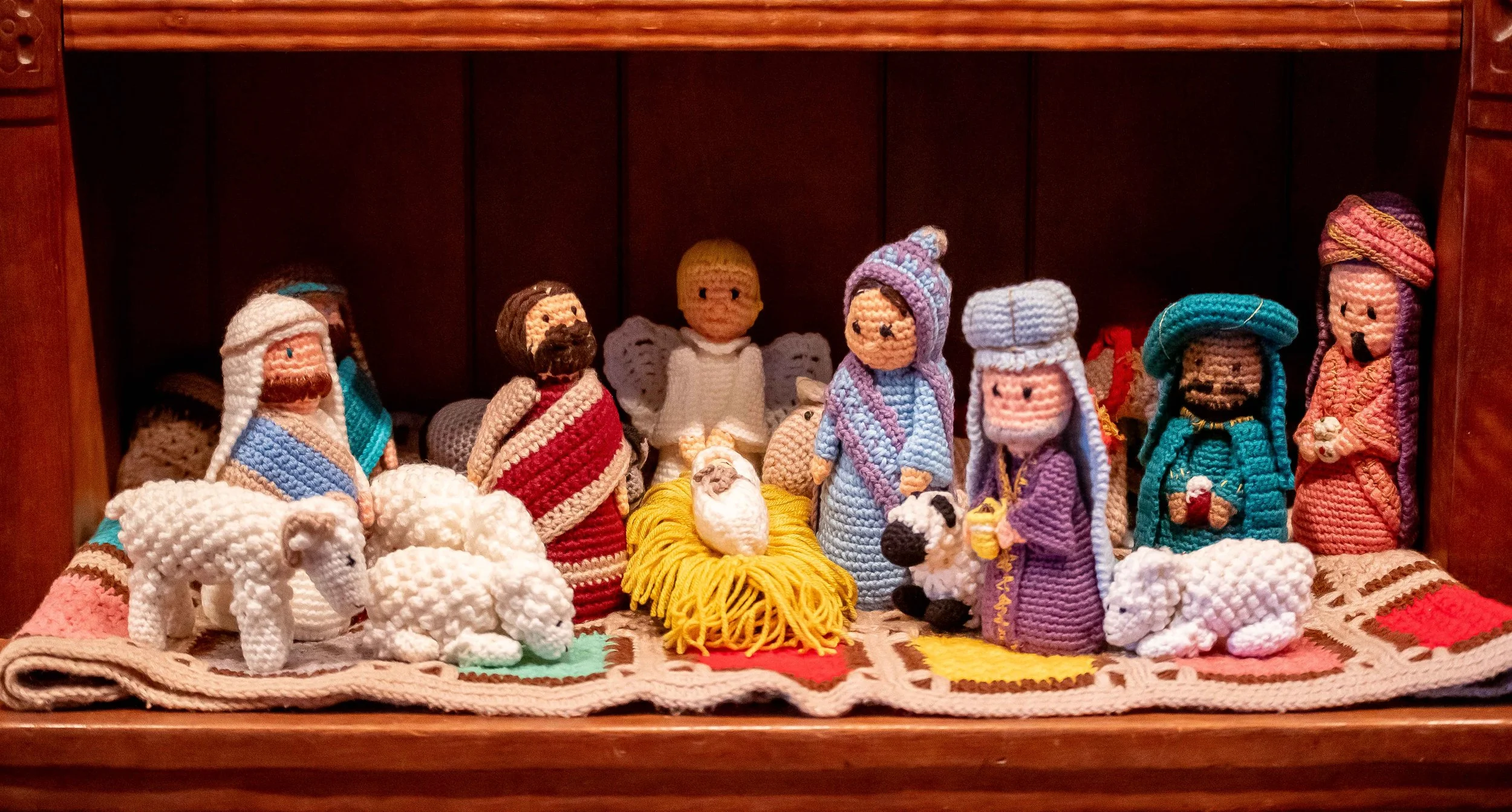 Figure 6: Crocheted Nativity (1993, age 13). Stitched together by A.J. DiAntonio using crocheted pieces made by his grandmother, Anne DiMarino, with added facial and hair details. On loan from A.J. DiAntonio.