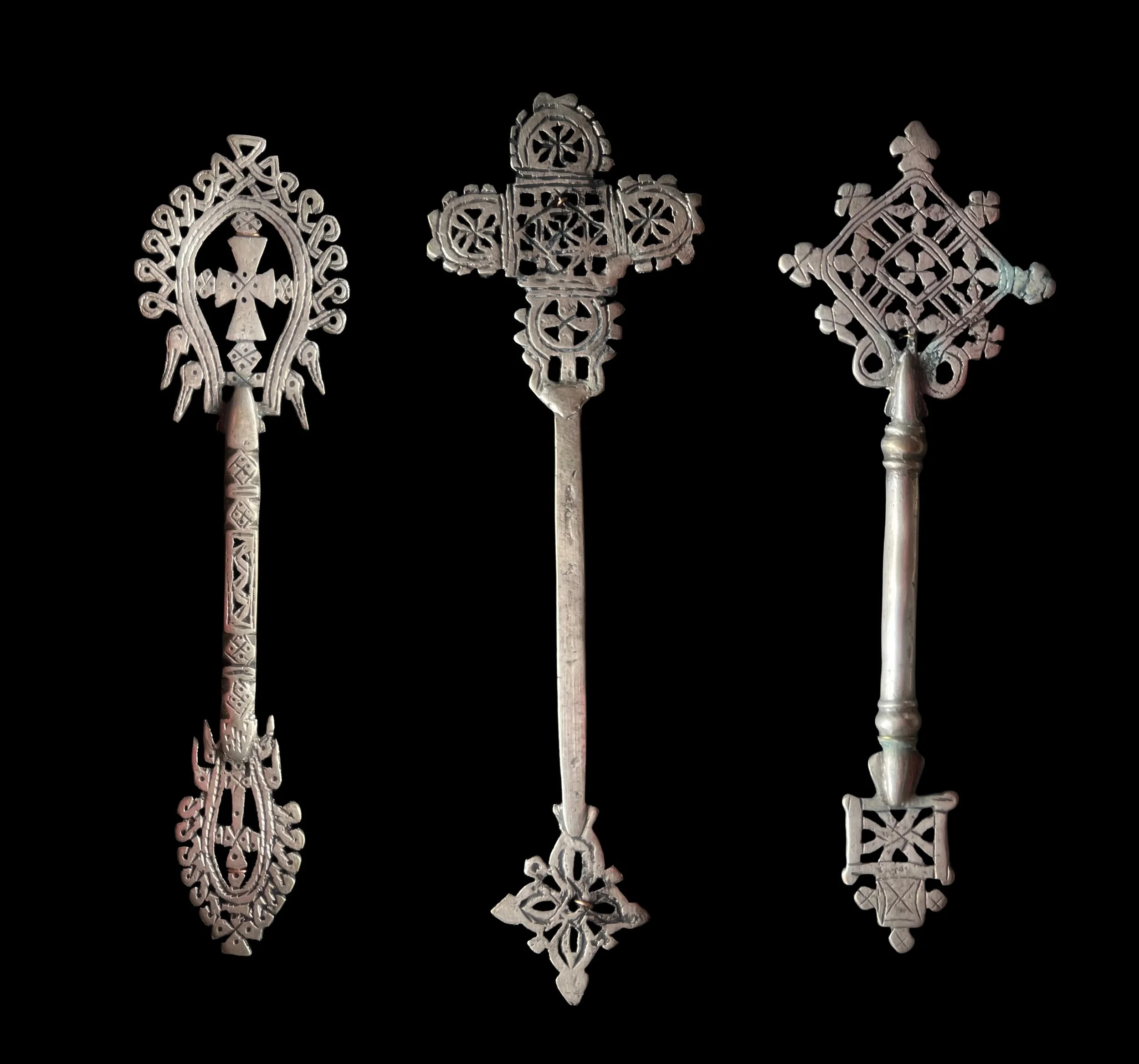 Figure 2: Metal hand crosses from Ethiopia reflect a long tradition of intricate design used in worship and religious processions.