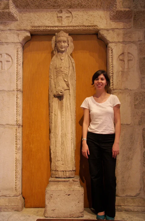 Julia Perratore with a 12th-Century Haloed Queen from St.-Thibaut, Provins, France.