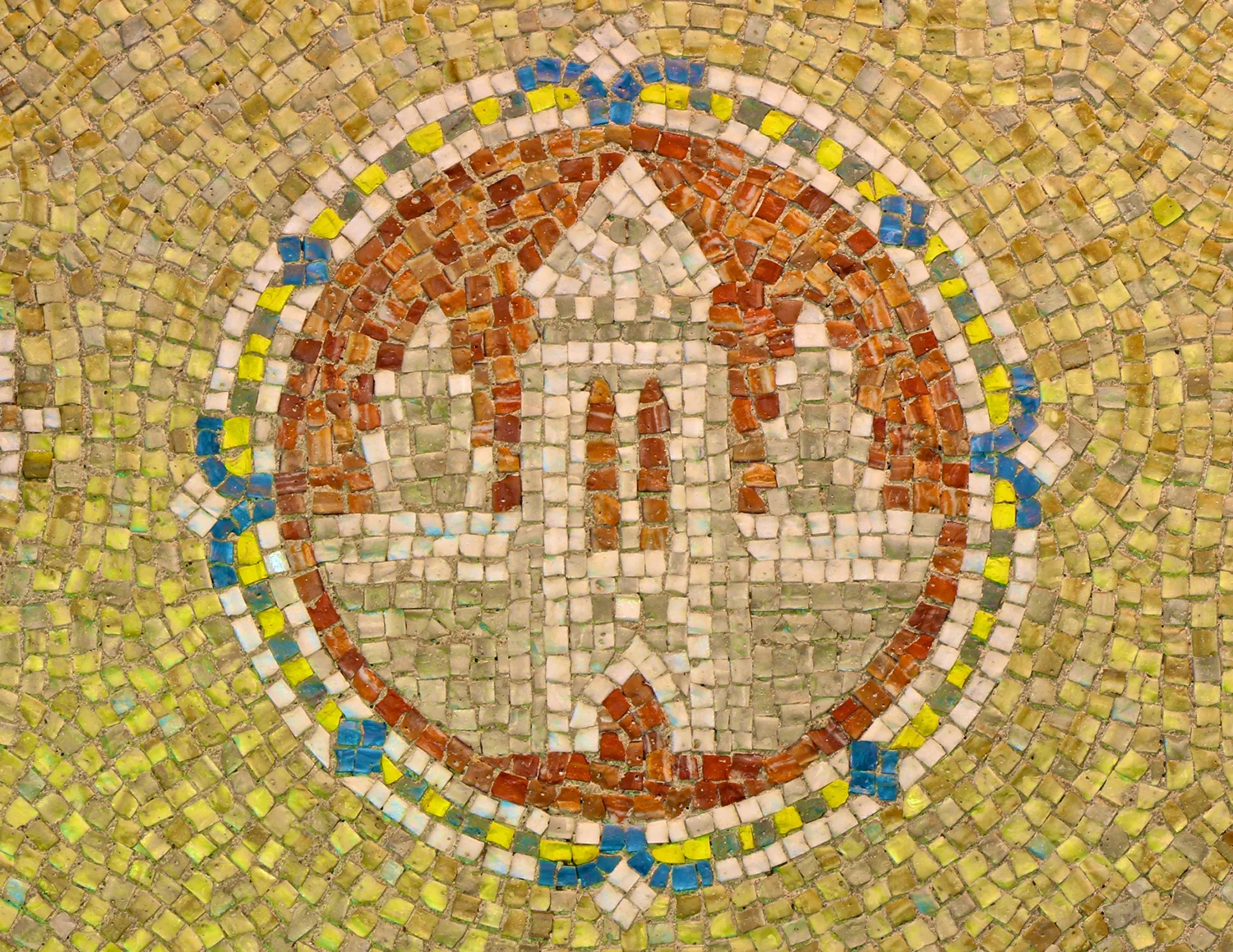 Figure 1: Mosaic medallion on the wall of the first floor entryway area.